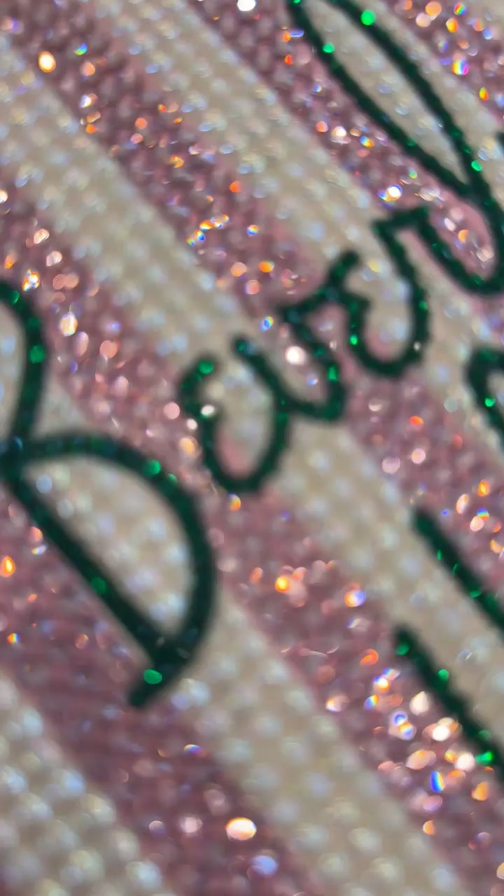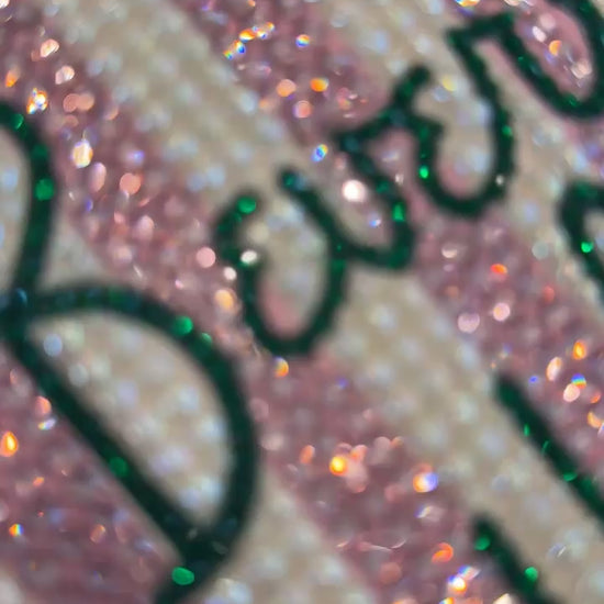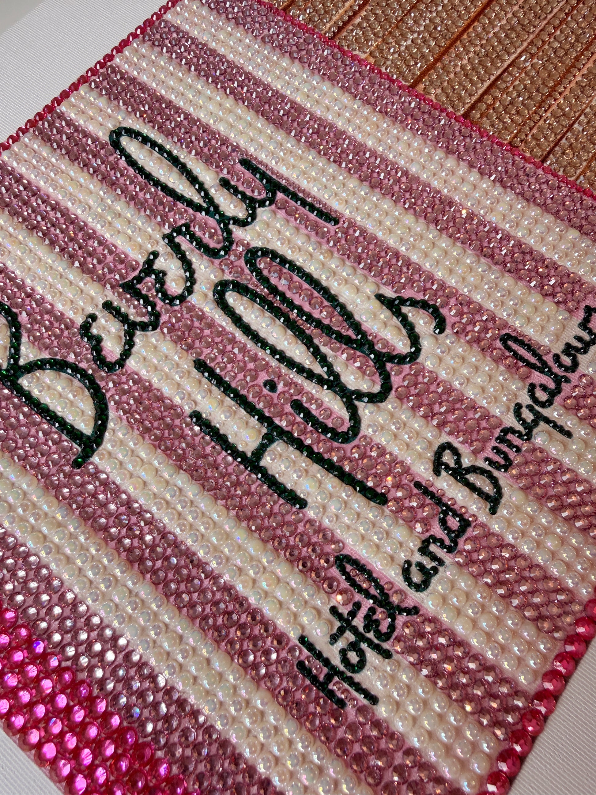Hand-embellished with high-shine glass rhinestones, this piece brings texture, sparkle, and a playful edge to a timeless design. From the signature pink detailing to the rich, dimensional accents, every element is designed to catch the light and elevate your space.