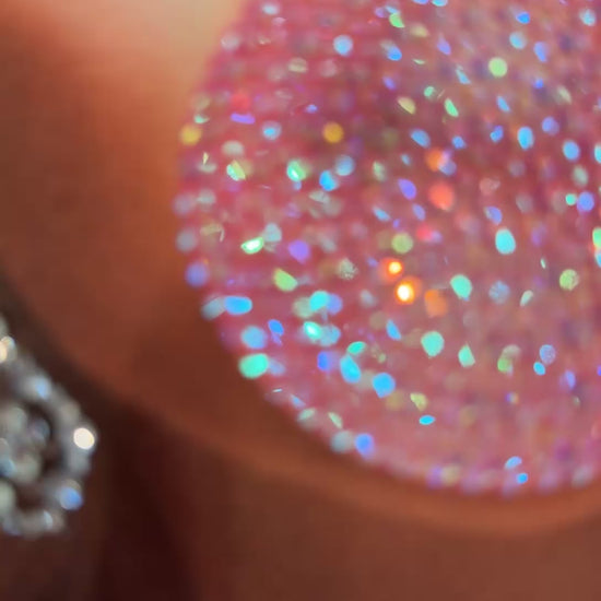 The contrast is everything—smooth, minimal background paired with high-impact shimmer for a finished piece that feels both chic and unexpected.