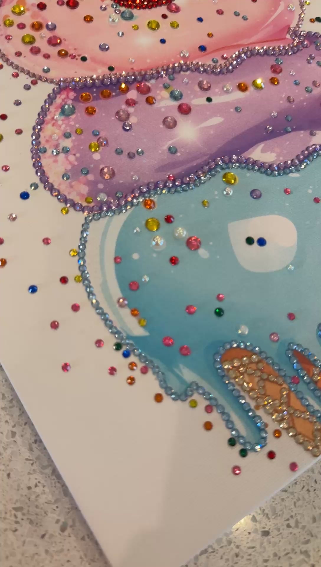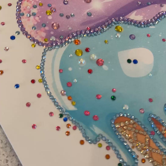 Designed with a mix of vibrant glass stones in multiple sizes, every section adds a new layer of shine—from the smooth outlines to the scattered sparkle throughout. It’s creative, a little whimsical, and guaranteed to stand out when finished.